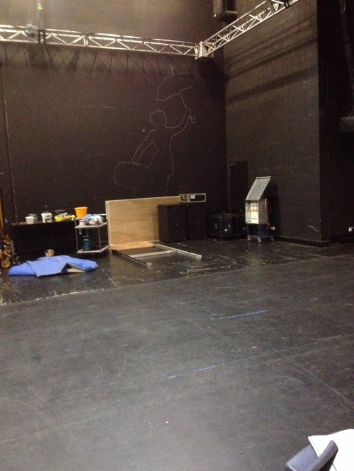 The thing about doing multiple shows, is that one tend to get a little nostalgic, or distracted…or both, especially when caffeine deprived. All these thoughts came to me after staring at a chalk outline on a backstage wall.
